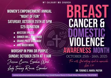 Join us October 25th at 5pm, for our Women's Empowerment Annual Night of Fun and on Sunday, October 26th at 11am Worship.