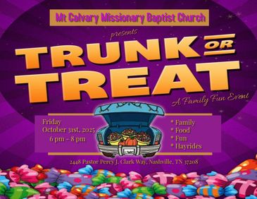 Join us Friday, October 31st from 6pm - 8pm, for our Annual Trunk or Treat Event.